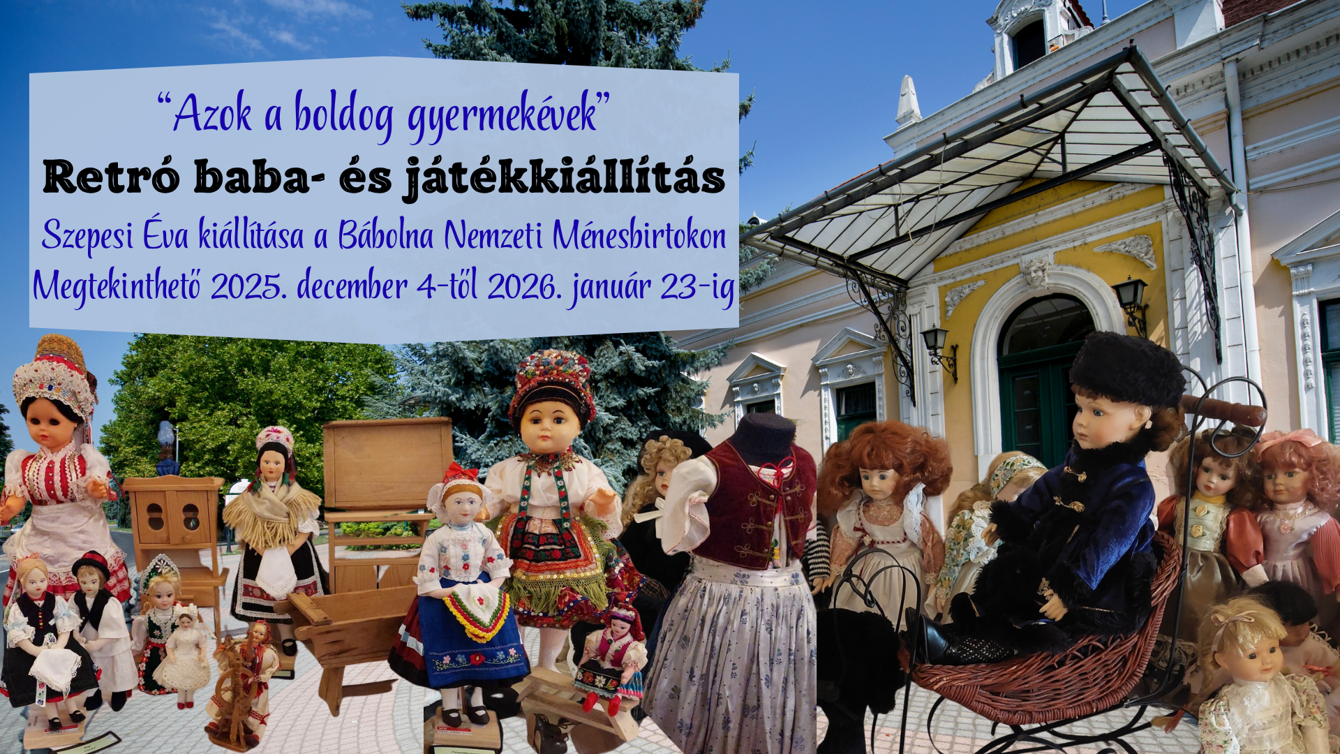December 4-én retró baba- és játékkiállítás nyílik a Bábolna Nemzeti Ménesbirtok IV-es termében Szepesi Éva jóvoltából „Azok a boldog gyermekévek” címmel.